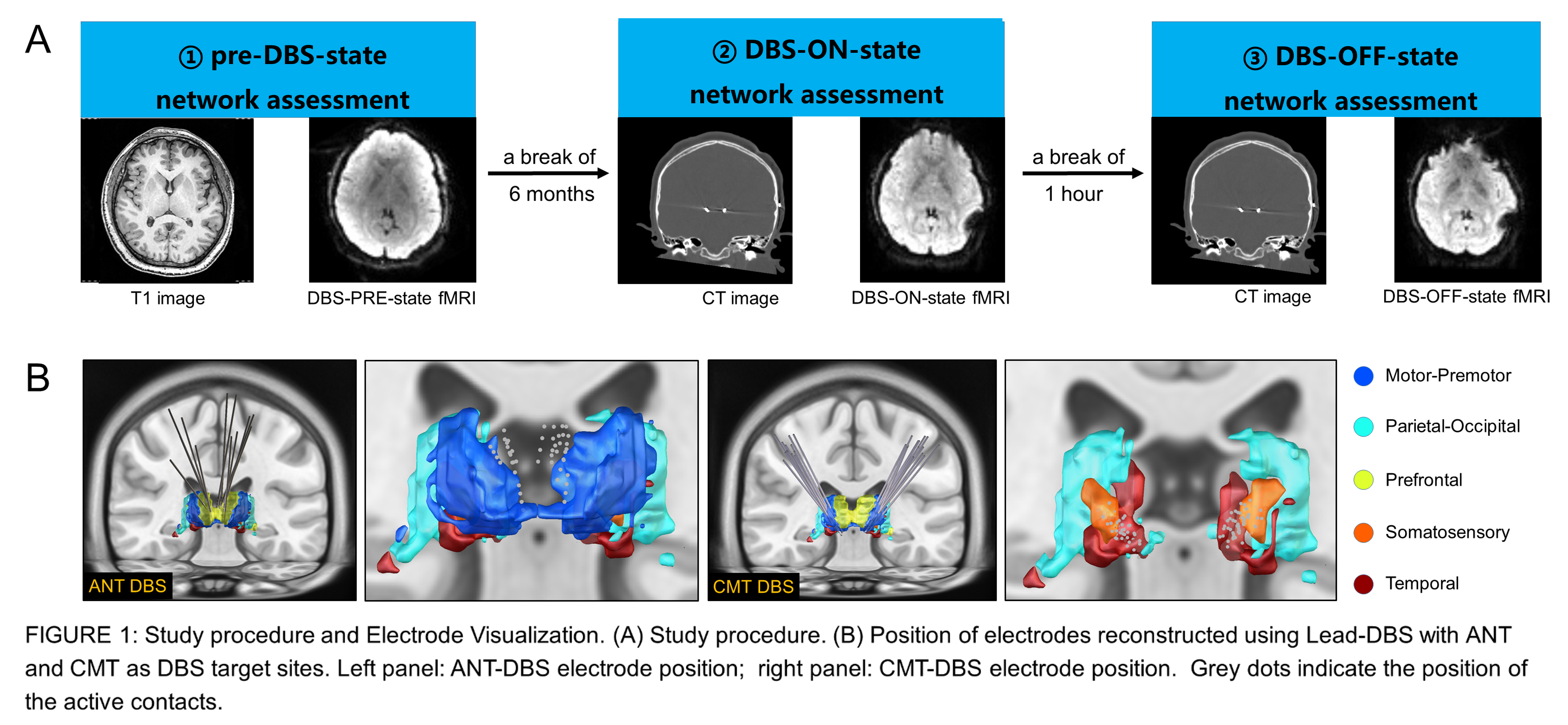 A retrospective observational study at Ruijin Hospital included 21 patients with drug-resistant epilepsy: 7 with bilateral temporal lobe epilepsy (BTLE) receiving ANT-DBS and 14 with generalized epilepsy receiving CM-DBS. All patients underwent rs-fMRI scans preoperatively and at 6 months postoperatively in both DBS-OFF and DBS-ON states, with analyses including amplitude of low-frequency fluctuation (ALFF), functional connectivity (FC), and degree centrality (DC) to assess whole-brain changes. Statistical comparisons used paired t-tests, with demographic and clinical data collected to contextualize findings.